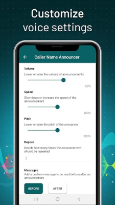 ✔ Customize your preferences: Select the volume, speed, and pitch of announcements.