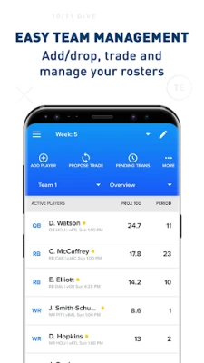 -Set your lineup, add/drop players, propose/monitor/accept trades.