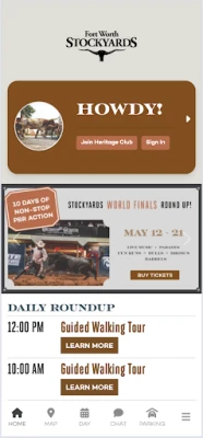 Made in America, and exclusively managed by the Stockyards Heritage Development Co., there’s no login required to enjoy this app brimming with entertainment, restaurants, live music, museums, fashion, year-round weekly rodeos and bull riding, and the only twice daily cattle drives in the world.