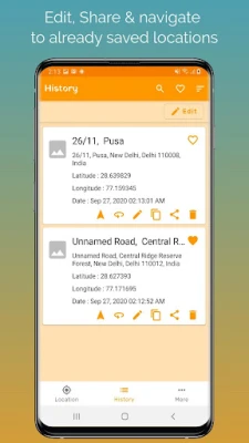 Save your current location & share with friends.Save important details such as coordinates, title, location address, personal note & image of location to easily remember the visited place.